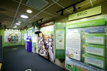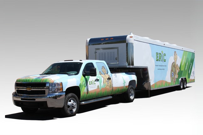 E.R.I.C. is a self contained 38 foot museum quality trailer that provides an active and engaging learning environment by illustrating how recycling lives on after items are tossed into the blue recycling container. This mobile educational recycling trailer was built for the City of Tempe and designed to accommodate guests as they discover the various useful products created from landfill diverted material. The educational trailer includes exhibits that heighten awareness, generate enthusiasm, and increase understanding of recycling among consumers and businesses. The trailer itself contains many recycled and re-purposed material, including the interior finishes featuring eco-friendly materials, such as the Nike Grind floor surface. Call us today at (480) 464-7007 to find out if you qualify to purchase E.R.I.C. off of the Cooperative Purchasing Agreement or to get a quote on your very own mobile educational recycling vehicle.