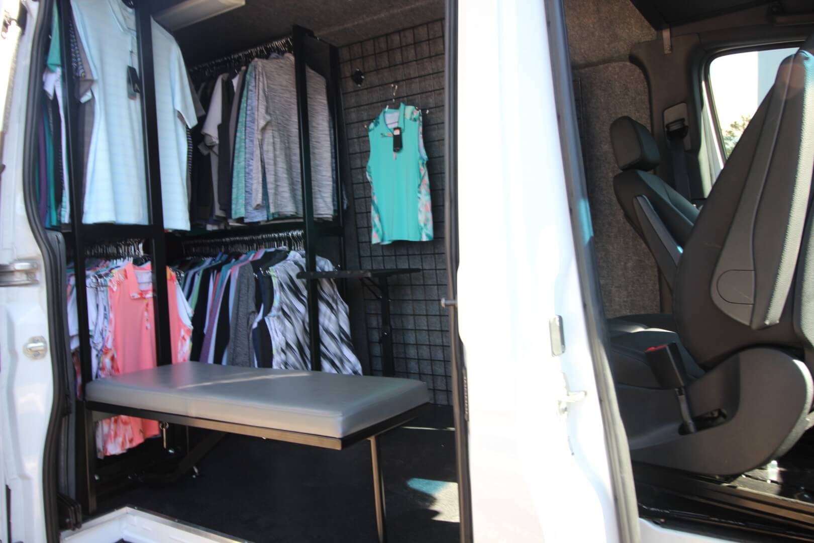 The interior is designed to function like a compact, mobile retail boutique.