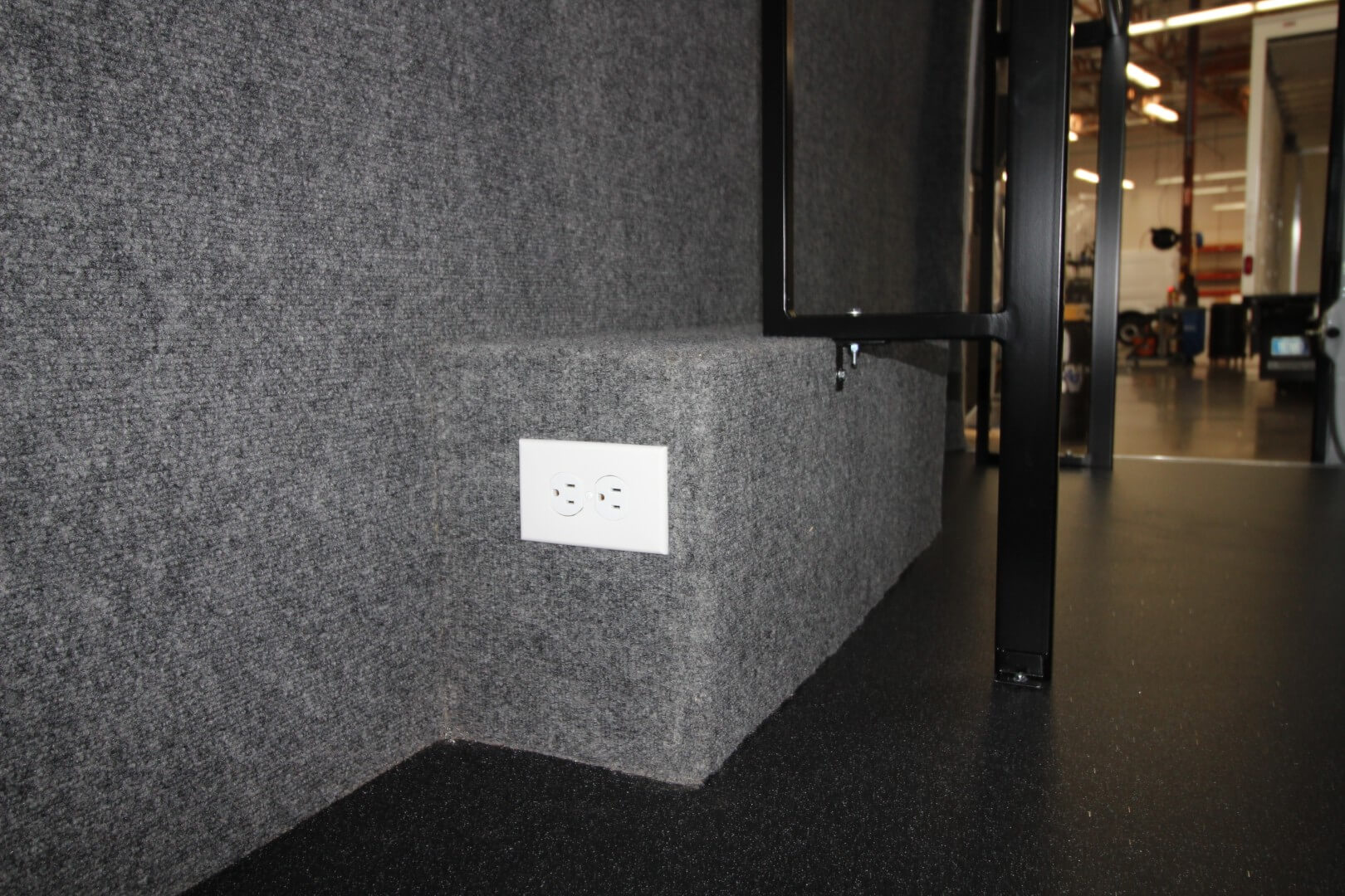 The bench folds up neatly when not in use, maximizing aisle space.