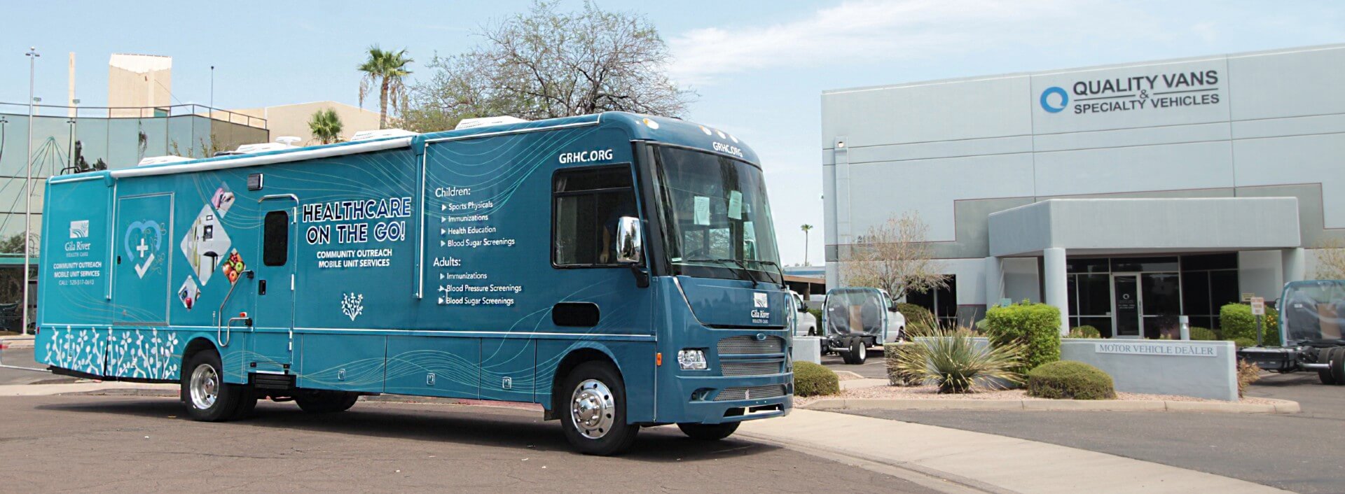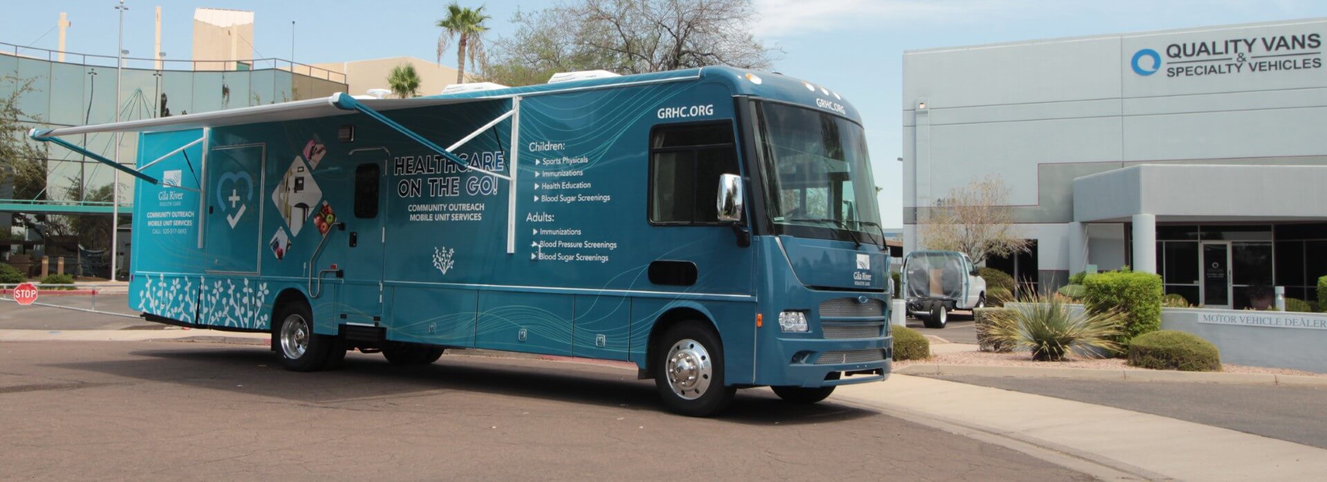 The Gila River Health Care Mobile Medical Outreach Clinic is a fully equipped mobile medical coach designed to deliver comprehensive healthcare services directly to the community. Built to support immunizations, health screenings, sports physicals, and health education, this outreach unit creates an accessible, private, and climate‑controlled environment for patients and staff.
