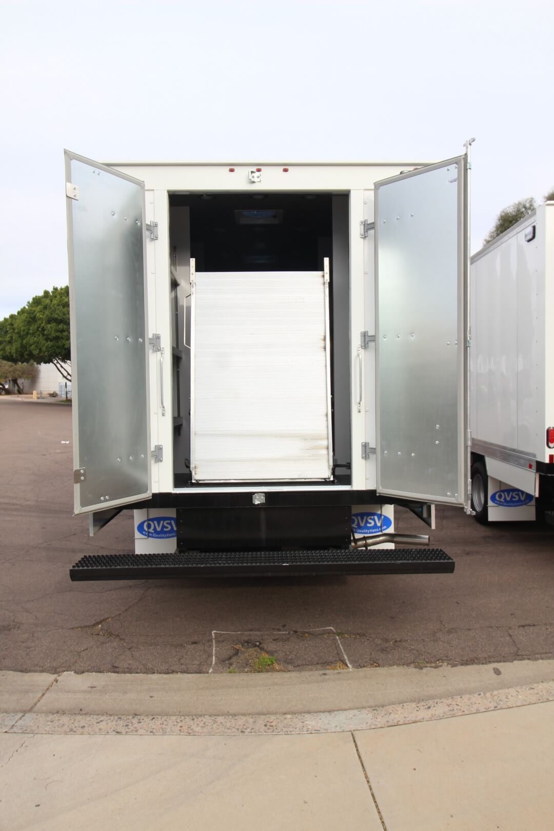 Rear dual-access doors create a second entry/exit point and allow for rapid unloading
