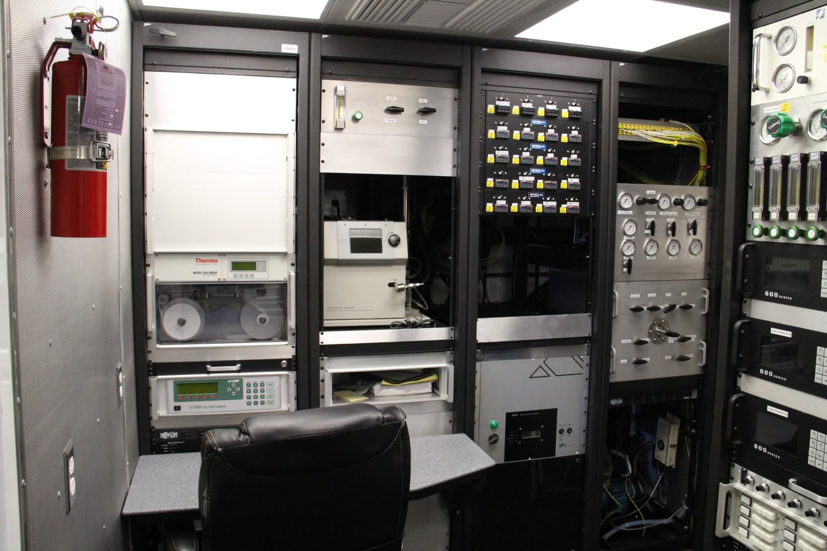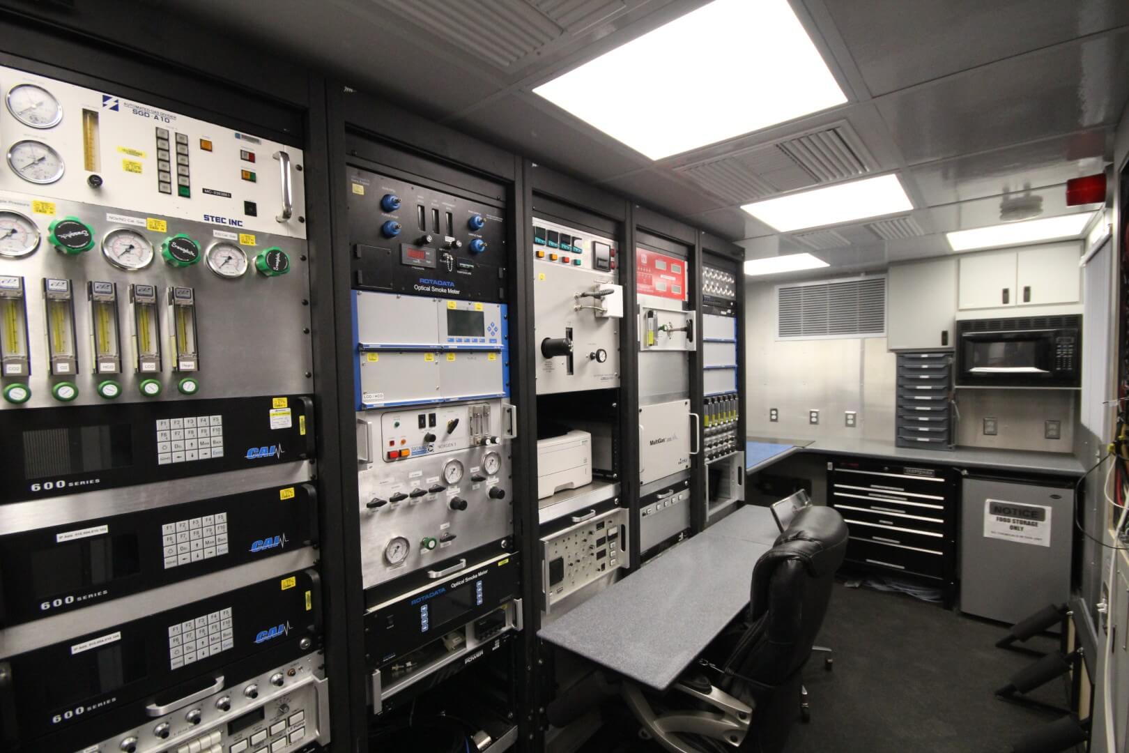 Supports sensitive emissions sensors, measurement equipment, laptops, and tools commonly used inside mobile lab environments