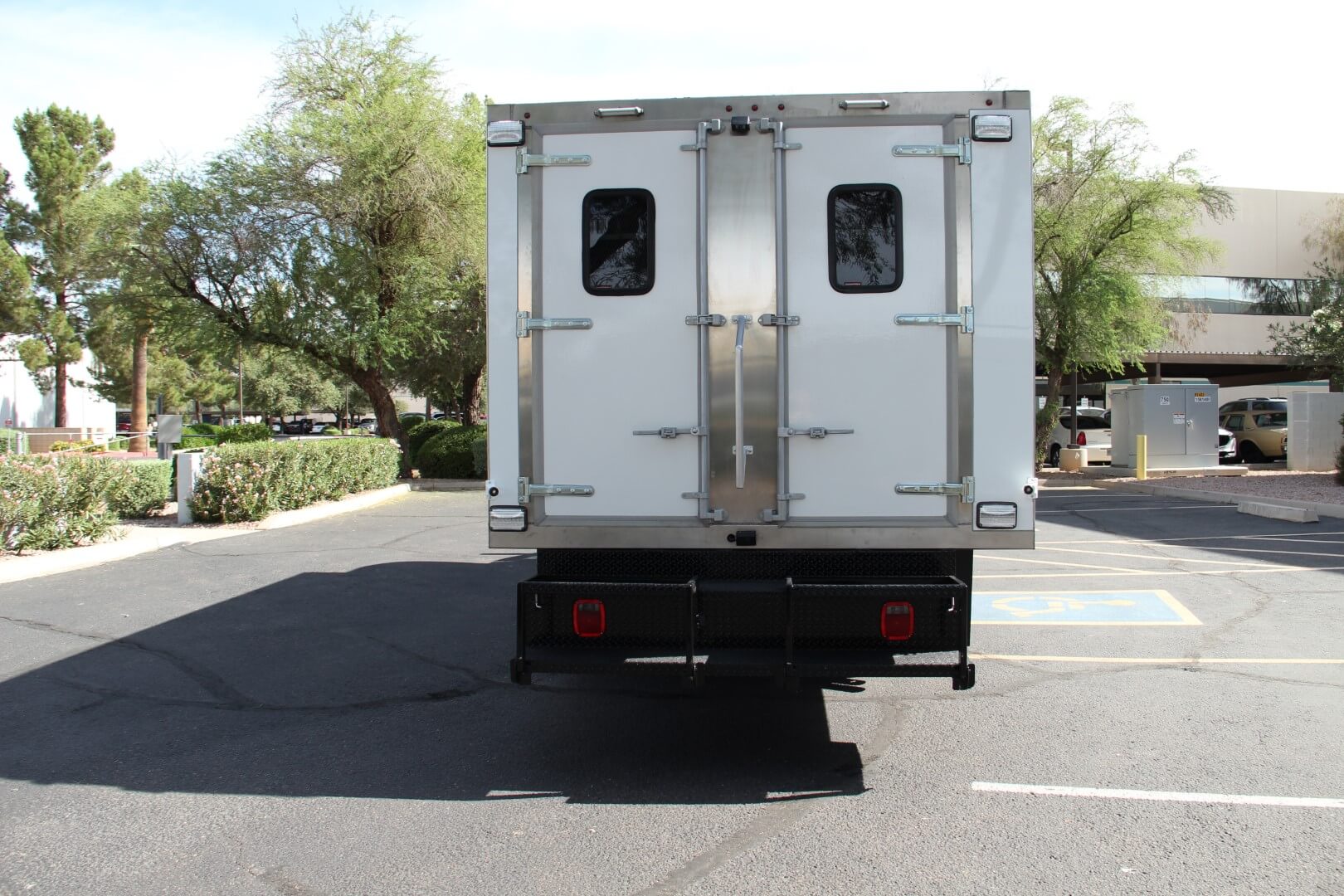 Reinforced doors for secure access: one on the passenger side and one at the rear