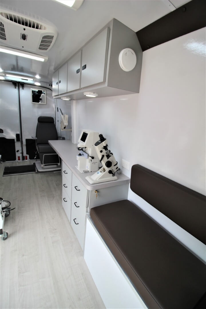 Designed for mobility, efficiency, and patient comfort, this mobile eye exam clinic helps deliver comprehensive, high‑quality vision care wherever it’s needed most, while maintaining the functionality and workflow standards expected of a traditional optometry office.