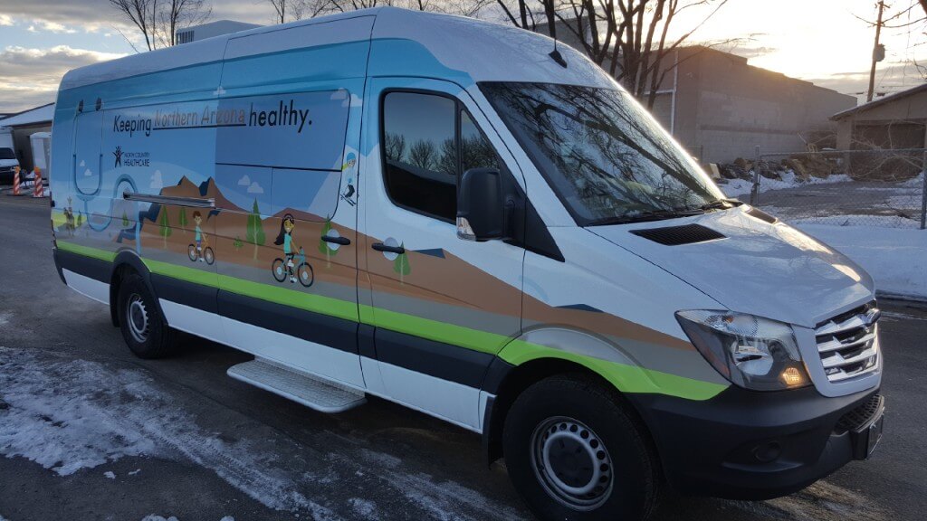 The exterior of this van was carefully thought out, creating a welcoming and inviting space for patients.