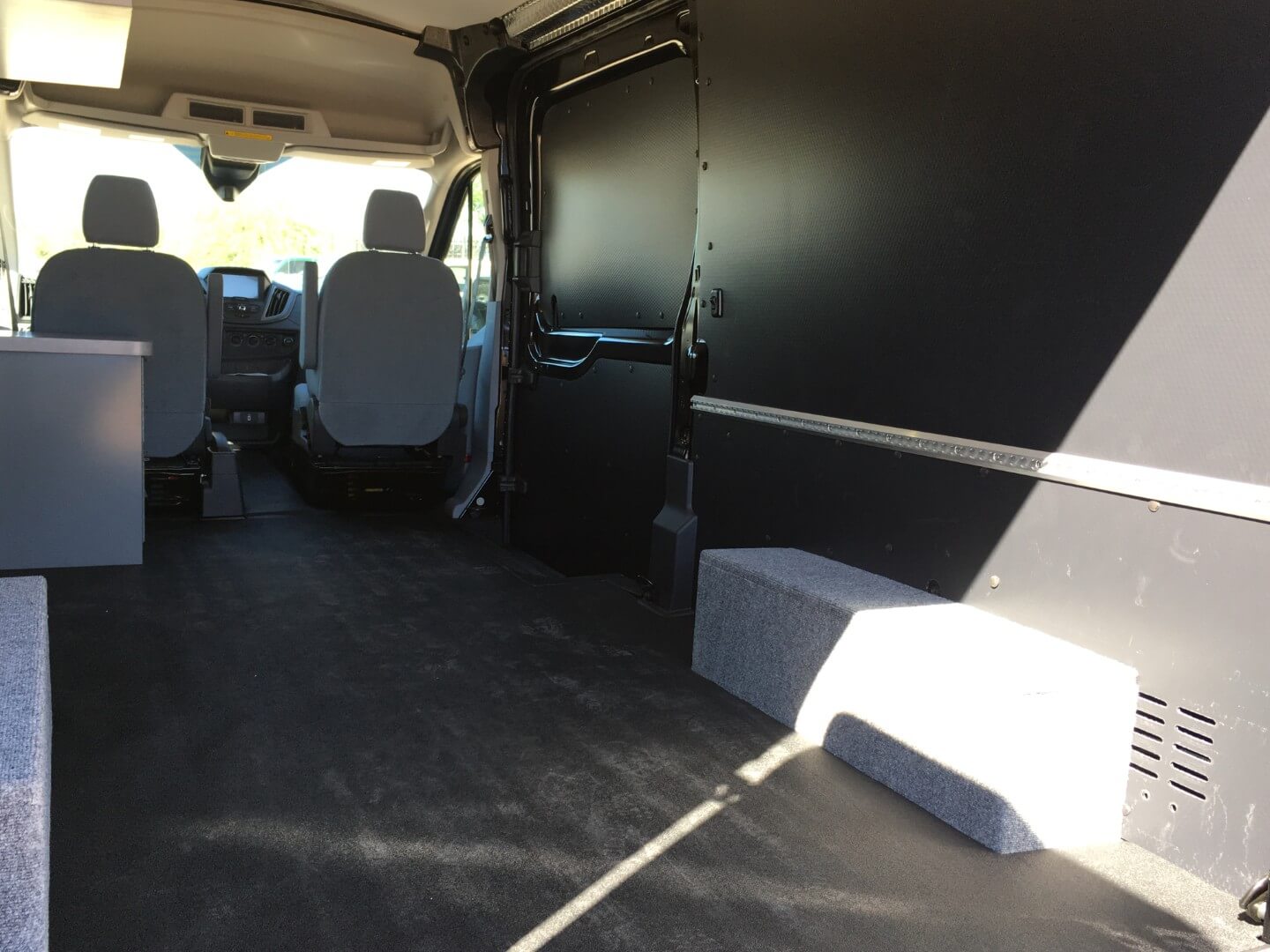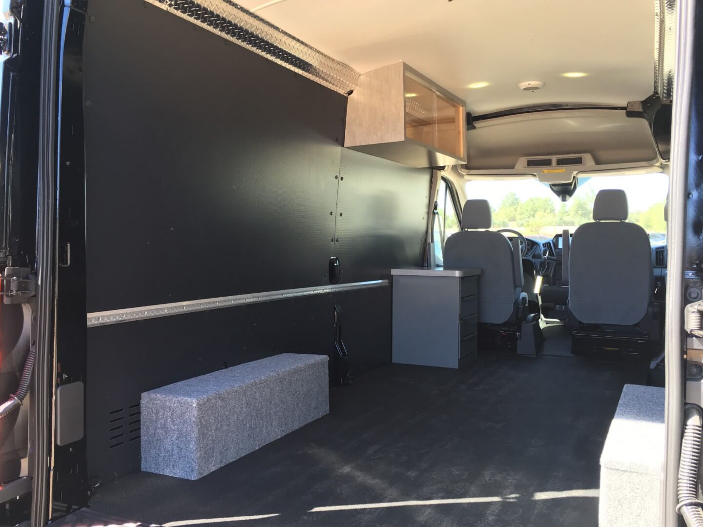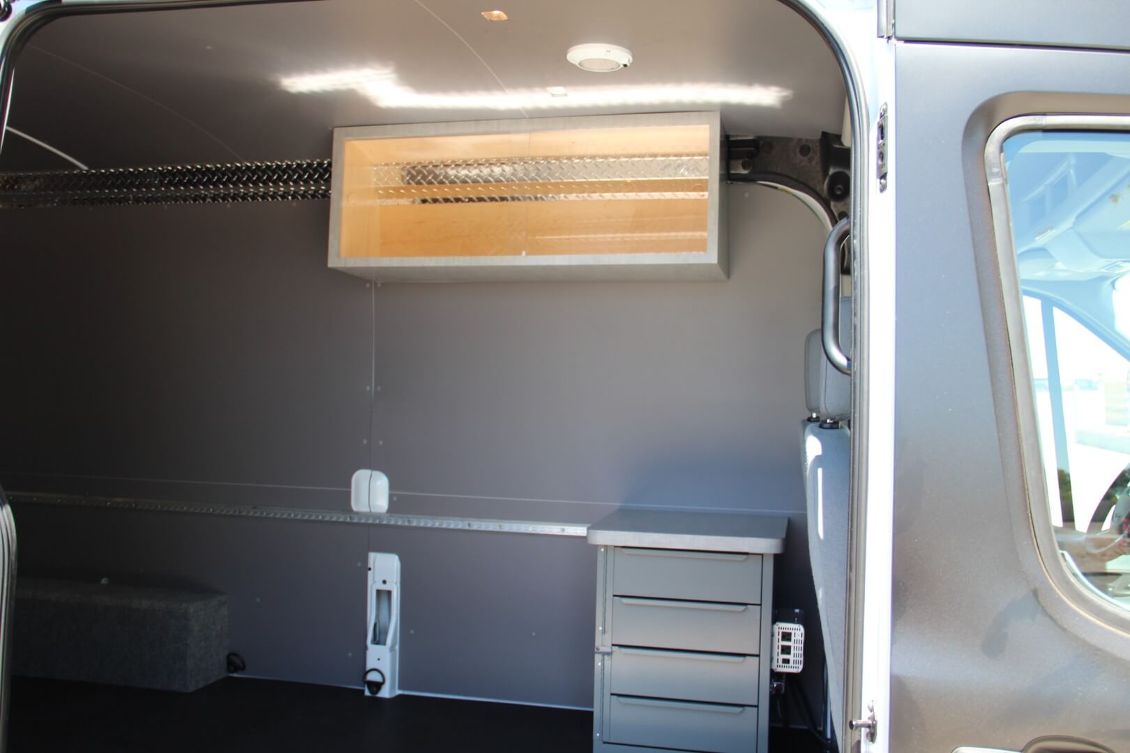 Three drawer base cabinet on the driver’s side for organized storage