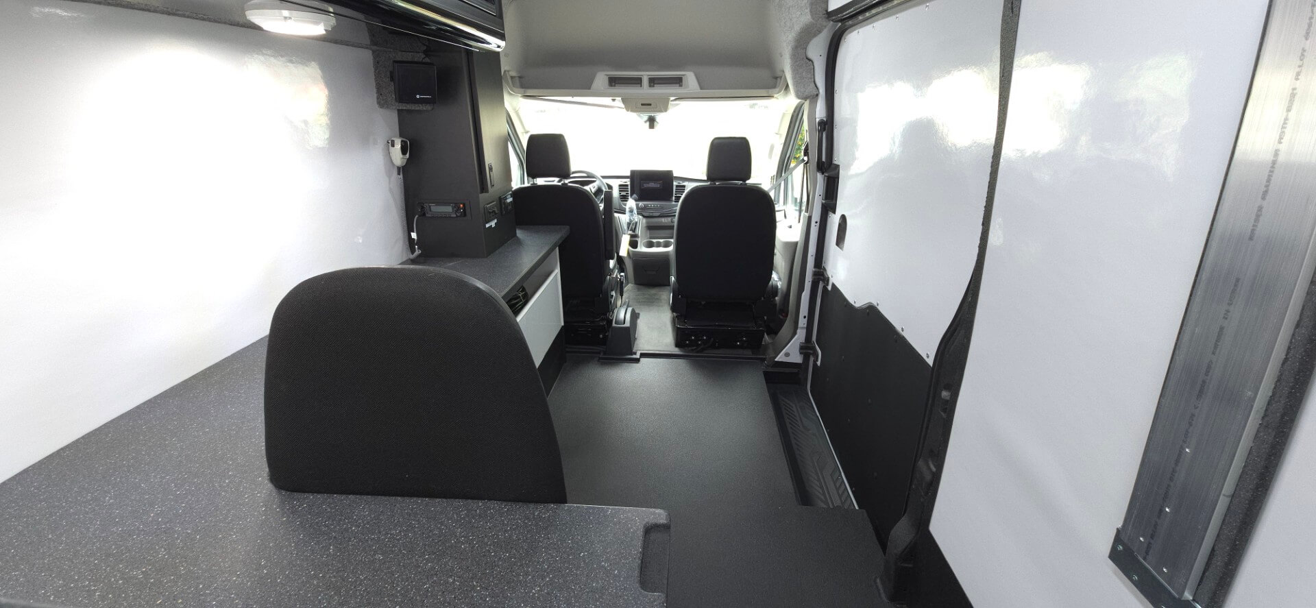 Entering through the side sliding door reveals a well‑structured testing environment: