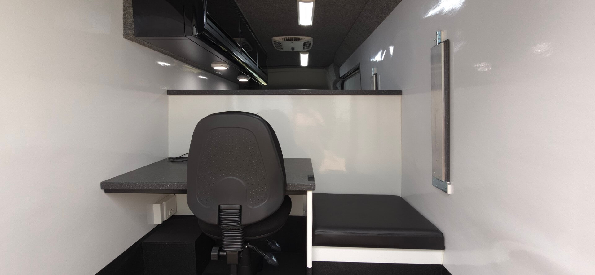 With dual testing stations, professional blood draw benches, optimized storage, and a climate‑controlled interior, this Mobile DUI Van functions as a dependable, on‑location testing center tailored to modern DUI enforcement needs.