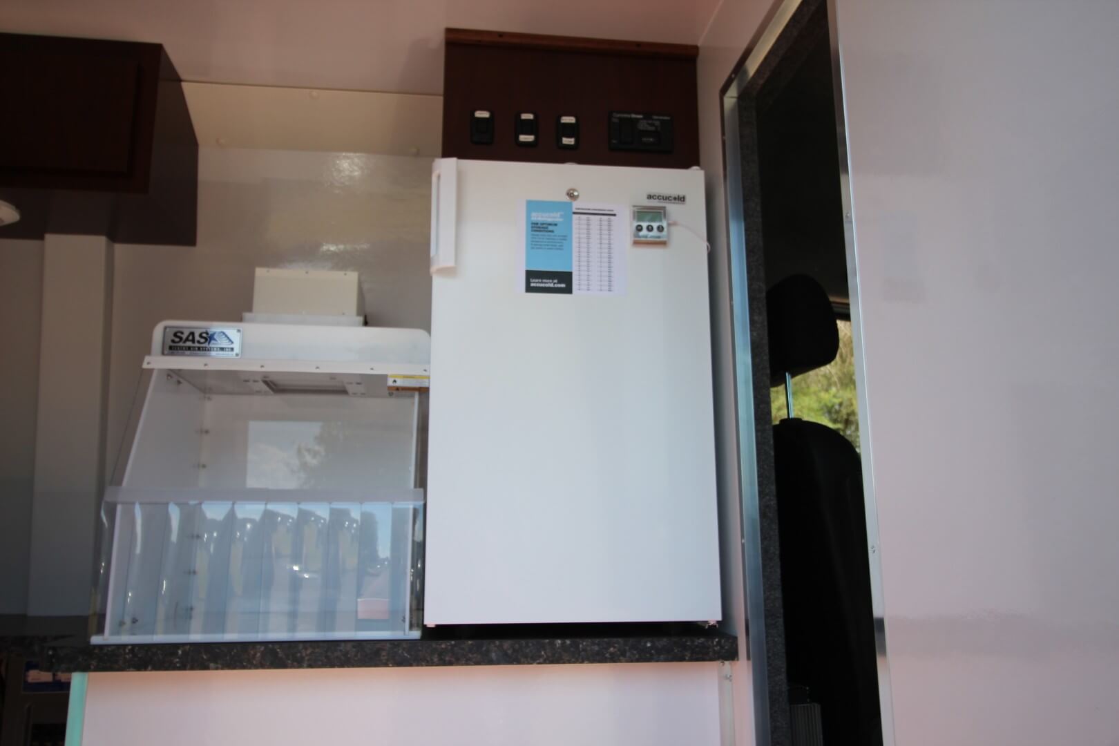 Next to the refrigerator is a clean, portable room, ideal for procedures requiring heightened sterility or patient separation.