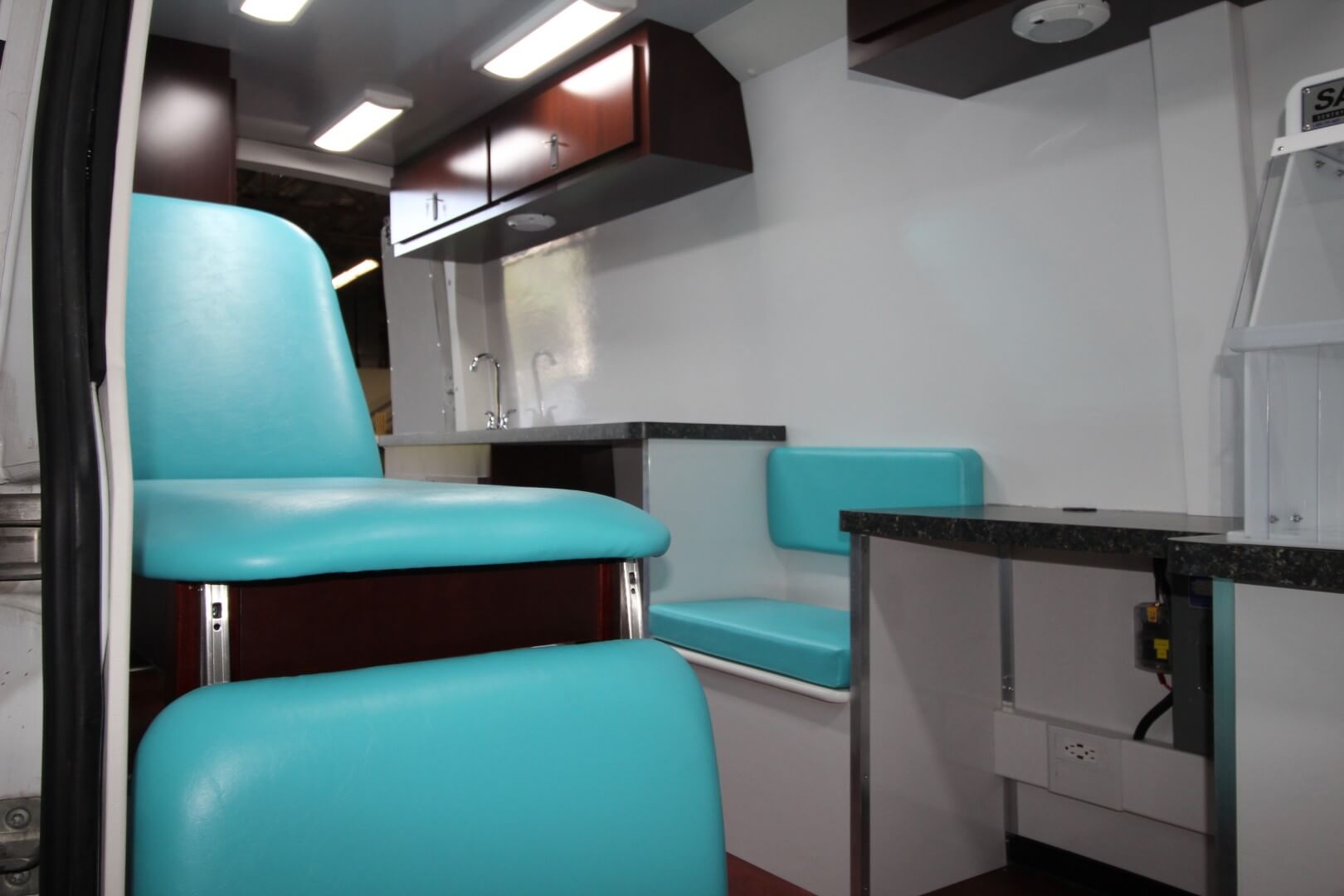 Built with patient comfort, operational efficiency, and clinical versatility in mind, the van provides a controlled environment for primary care, COVID‑related services, pain management, IV nutrient therapy, regenerative treatments, acupuncture, and other specialized services.